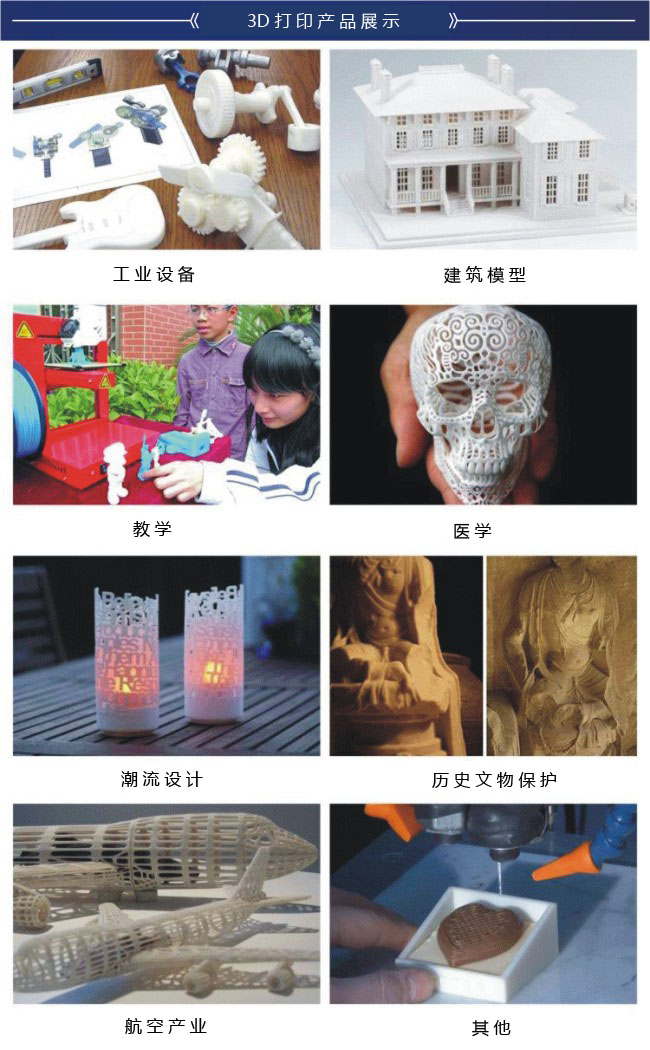 GLD-140 3D打印機(jī)的應(yīng)用領(lǐng)域極為廣泛,主要包括工業(yè)品設(shè)計(jì)、機(jī)械模具制造、教育、醫(yī)療、動(dòng)漫、玩具、制鞋行業(yè)、藝術(shù)設(shè)計(jì)等等,是一款方便大眾,極易操作的3D打印機(jī)??梢匝杆賹⒊橄蟮臇|西模型化。