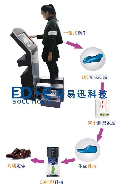 面對這種現(xiàn)狀只有真正高效且省人工的鞋機(jī),才能滿足制鞋企業(yè)的需求,適應(yīng)未來大環(huán)境的發(fā)展。對于鞋機(jī)未來的發(fā)展,業(yè)界人士紛紛認(rèn)為,“智能自動化”是未來的必然趨勢。精易迅腳型測量儀(腳型三維掃描儀)正是基于智能、自動化、準(zhǔn)確、便捷、滿足客戶定制化需求的理念為制鞋、足部醫(yī)療、鞋店零售等應(yīng)用自主研發(fā)的量腳設(shè)備。