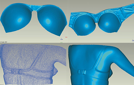 (1) 可以通過(guò)對(duì)內(nèi)衣點(diǎn)云數(shù)據(jù)進(jìn)行分析處理,進(jìn)而得到內(nèi)衣罩杯的所有尺寸數(shù)據(jù),對(duì)其進(jìn)行修改、設(shè)計(jì),并可獲得量身定做的新產(chǎn)品和新樣式。