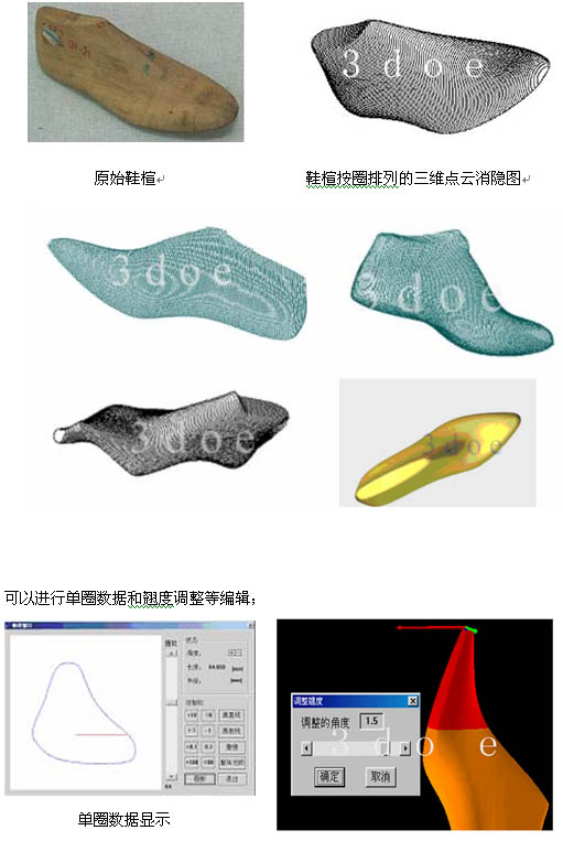 應(yīng)用描述:采用 PTS系列三維掃描系統(tǒng)可以快速的對鞋楦,鞋底進(jìn)行掃描,獲取三維掃描數(shù)據(jù),也可以迅速捕捉紋理信息, 輔助用戶進(jìn)行CAD/CAM設(shè)計。